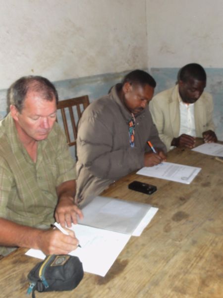 am 12. September 2015  sind drei Vereinsmitglieder vor Ort und in einer Sitzung mit dem Dorfkomitee wird die Sache unter Dach und Fach gebracht und der Kontrakt unterschrieben. Vorerst werden 12.000 € für den Ausbau von zwei Lehrerwohnungen und die Renovierung von sechs Klassenzimmern zugesagt. Mit 4000 € Vorschuss wird Baumaterial eingekauft und Fenster und Türen in Auftrag gegeben. Weiteres Geld wird dann im Oktober mitgebracht, wenn ein Helfer hingeht, um die Baumaßnahmen zu begleiten. Positiv überrascht sind die Besucher davon, dass die Toiletten inzwischen vorbildlich hergerichtet sind und sogar eine funktionierende Wasserleitung gelegt ist. Die Kinder sind schon ganz aufgeregt, dass es nun bald los geht und die Vorfreude auf eine neue Schule ist riesig.