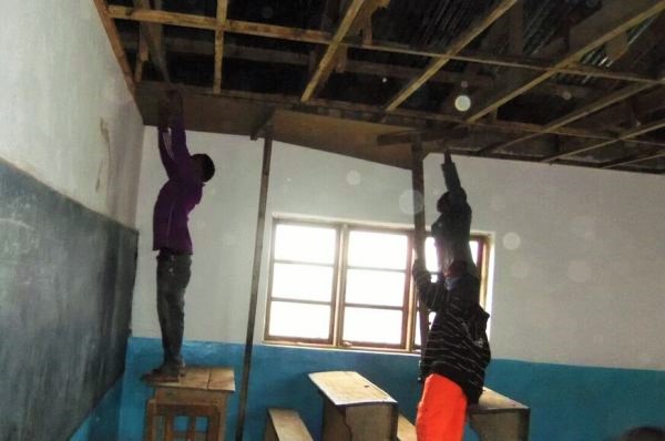 Am 30.Januar 2016 erreichen uns Bilder von den fortschreitenden Arbeiten. Die beiden Lehrerwohnungen haben jetzt neue Dächer und innen sind die Decken eingezogen und die Wände sind fertig gestrichen. Auch in den Klassenzimmern sind die Decken eingezogen, der Quertrakt hat einen neuen Fußboden und ist außen schon gestrichen. Doch sind noch längst nicht alle Arbeiten fertig. Allerdings sorgen auch immer wieder starke Regenfälle für Verzögerungen.