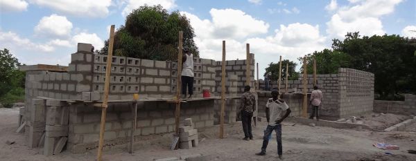 Erst wochenlanger Regen und jetzt hat die Coronakrise auch unser Projekt im Griff. Derzeit sind in Tansania Schulen und Kindergärten geschlossen. Da für die absehbare Zeit keine Möglichkeit besteht, den Bau wie geplant mittels eines Arbeitseinsatzes fortzuführen, wird der Entschluss gefasst in kleinen überschaubaren Schritten weiterzumachen. Am 25. April wird Geld für 7 Sack Zement, einem Armierungseisen und 10 Sack Kies, sowie den Arbeitslohn der Maurer überwiesen. Und schon am 29. April sind die vier geforderten Reihen hoch gemauert. Dies macht Mut und so soll es schon in der kommenden Woche weitergehen, sowie die Liste für das benötigte Material vorliegt.