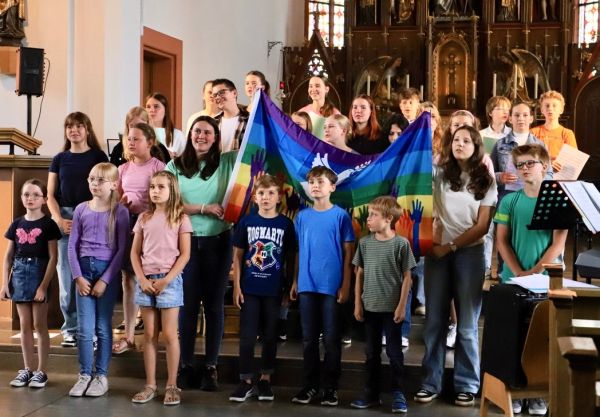 Die Idee hinter dem vom katholischen Gemeindeteam Euerdorf organisierten Konzert war es, „vom Reden über das Singen zum Tun“ zu kommen. So wurde für die Unterstützung der großen Hilfsorganisationen wie Unicef geworben, die gerade in Krisengebieten schnell vor Ort sein können und weltweit agieren. In einem kurzen Bildvortrag wurden aber auch die beiden regionalen Kinderhilfsorganisationen, denen der Erlös des Konzertes zufloss, näher vorgestellt: zum einen „Afrika Hilfe Franken e.V.“ und zum anderen der „Verein zur Hilfe für Kinder in der Dritten Welt Schweinfurt“. Für beide Organisationen wurde kräftig geworben. Vor und nach dem Konzert konnten sich die Besucher an zwei Ständen im Eingangsbereich der Kirche ausgiebig informieren. Beide Vereine bieten Kinderpatenschaften an, der „Verein zur Hilfe für Kinder in der Dritten Welt“ auch Projektpatenschaften. Bei der „Afrika Hilfe Franken“ ist es sogar möglich, selbst bei einem Arbeitseinsatz vor Ort dabei zu sein. Der Vorteil an diesen kleineren Hilfsorganisationen ist, dass ehrenamtlich gearbeitet wird und man daher sicher sein kann, dass jeder gespendete Cent auch bei den Hilfsbedürftigen ankommt. Für den guten Zweck kamen am Ende des Konzertes über 1200 Euro in den Spendenkörbchen zusammen.